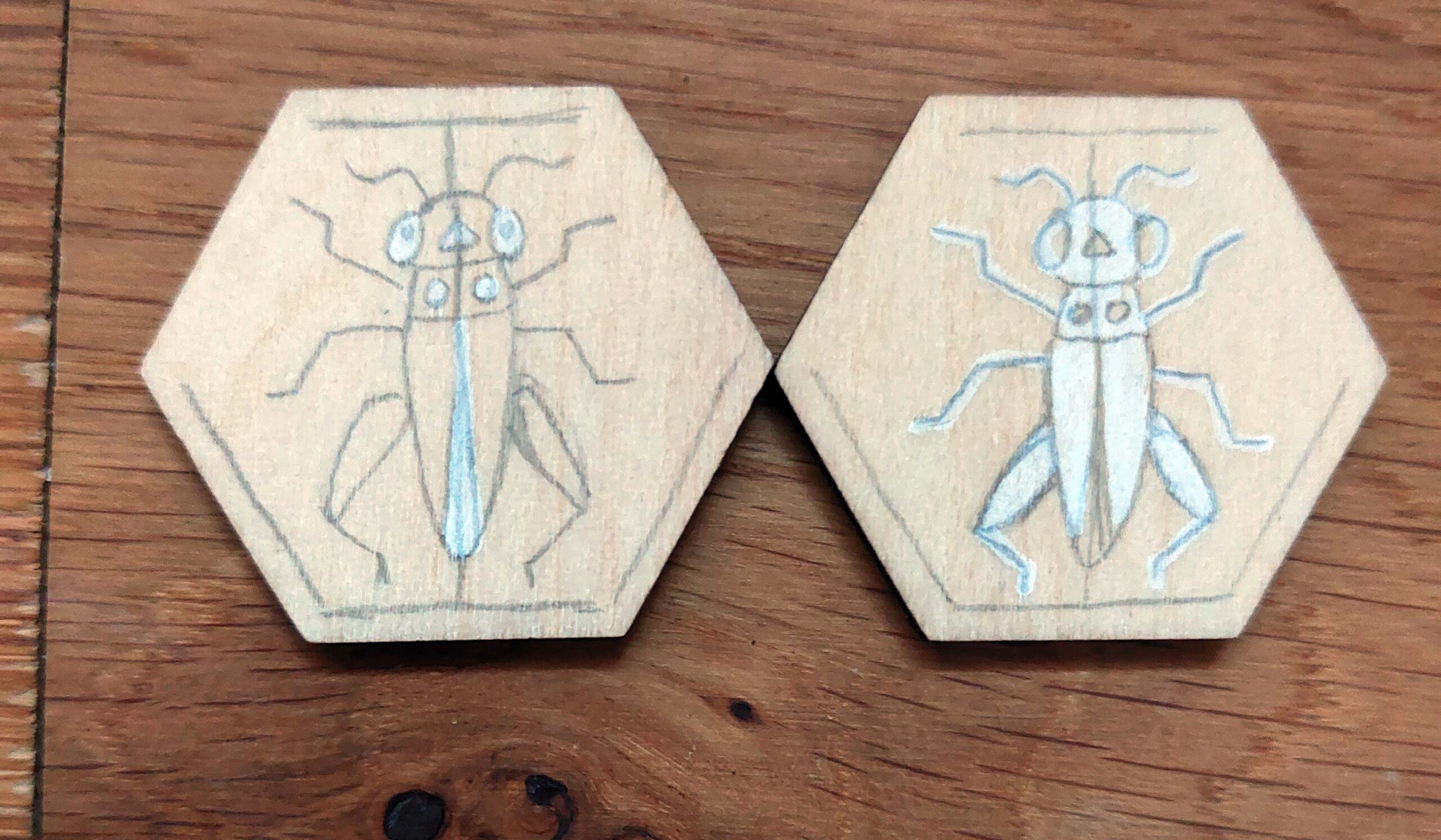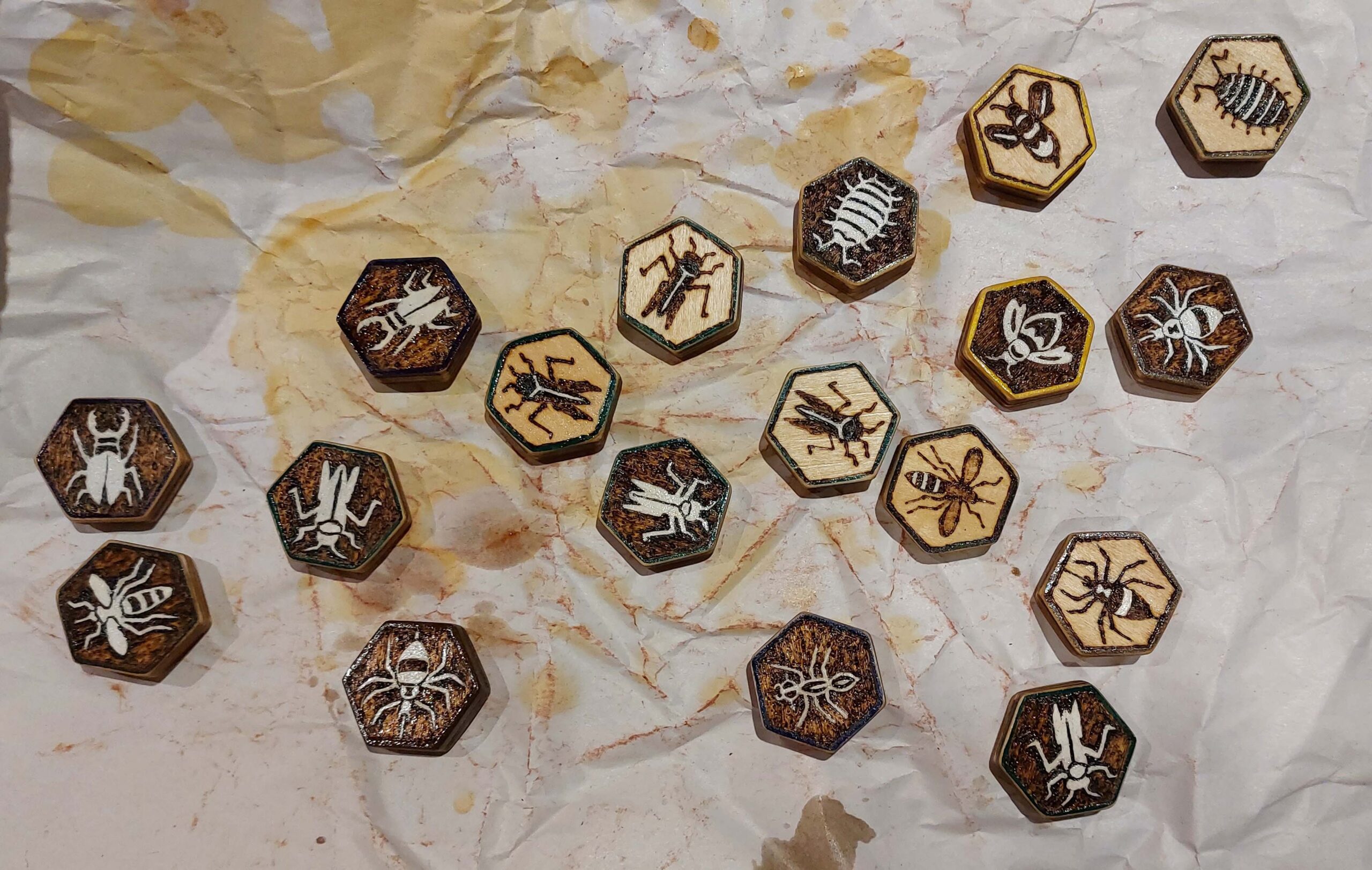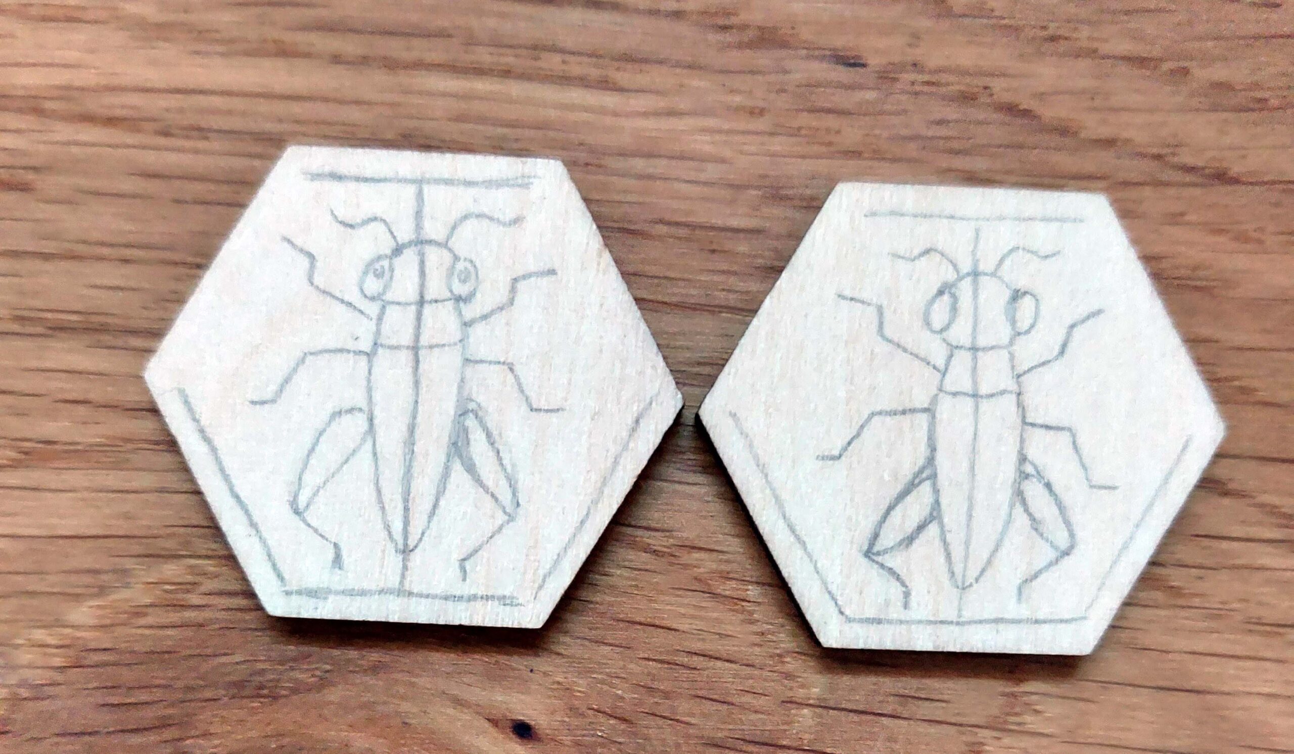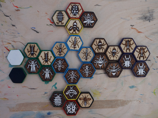 A friend recently introduced me to Hive, a board game with no board. It is made up of 22 hexagonal tiles that you can place onto any surface without worrying about carrying a board, dice, or any other pieces. I like to do creative projects over Christmas and the simplicity of the game made me start considering what I would need to make it myself. I own the game already, so this is mainly for the challenge of it.