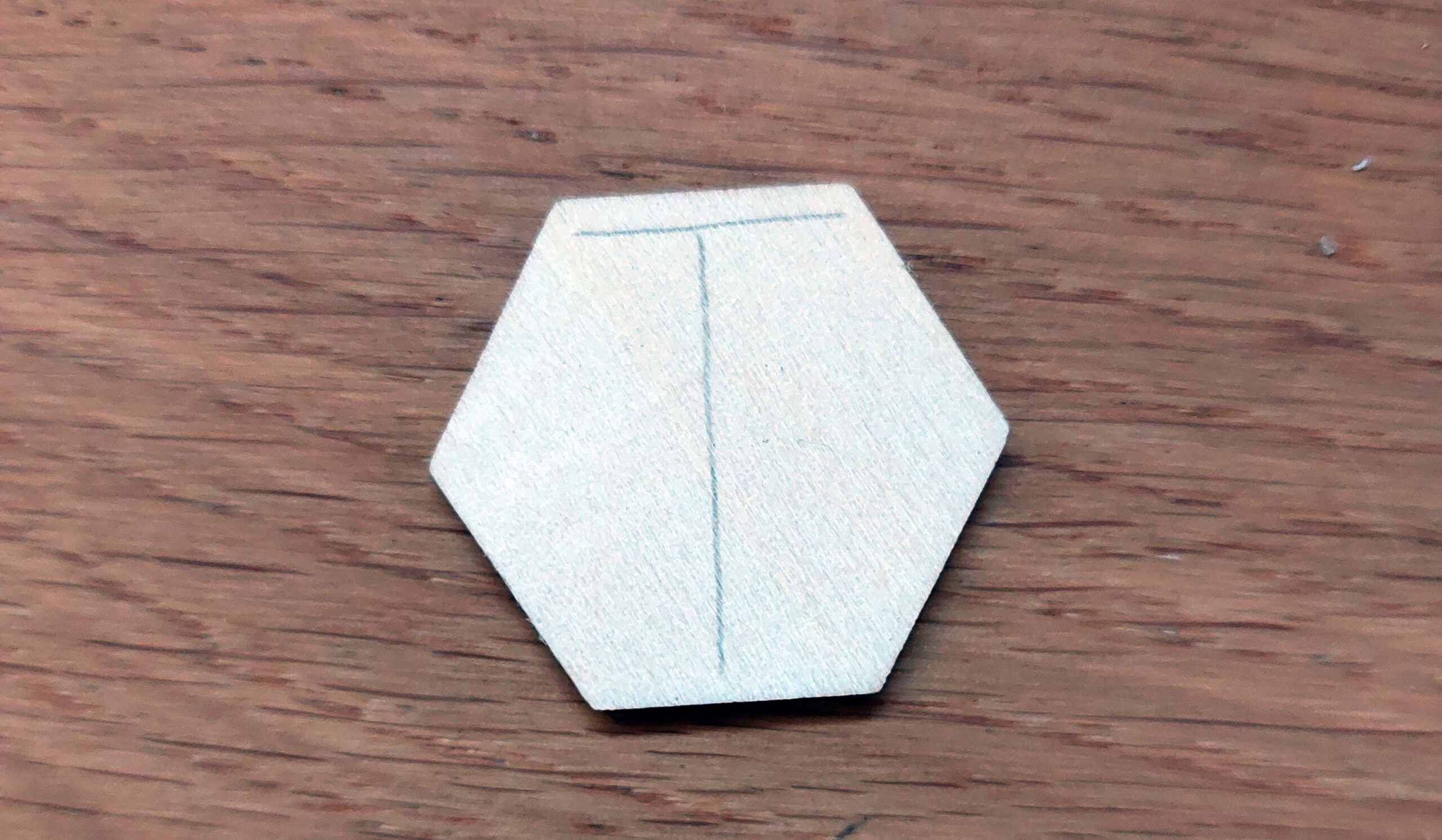 Use wood glue to glue spare hexagons to the bottom to make the tile thicker. I used failed burnt tiles first as the mistakes would be hidden anyway. This is only necessary if you want thicker tiles, three tiles total make it about 8mm high which is about right to be in proportion with the width.