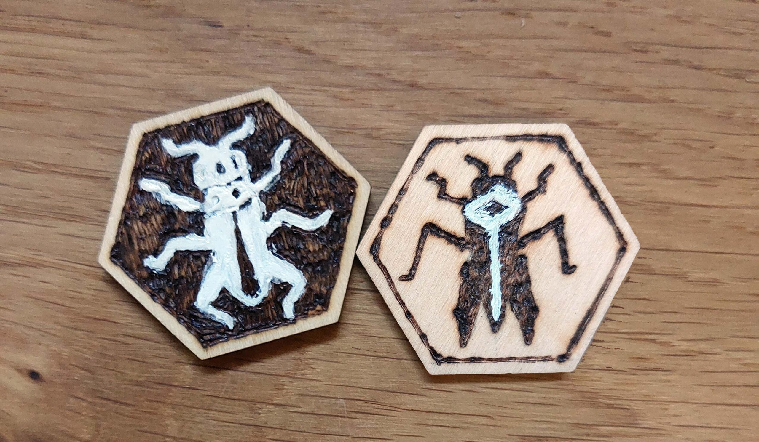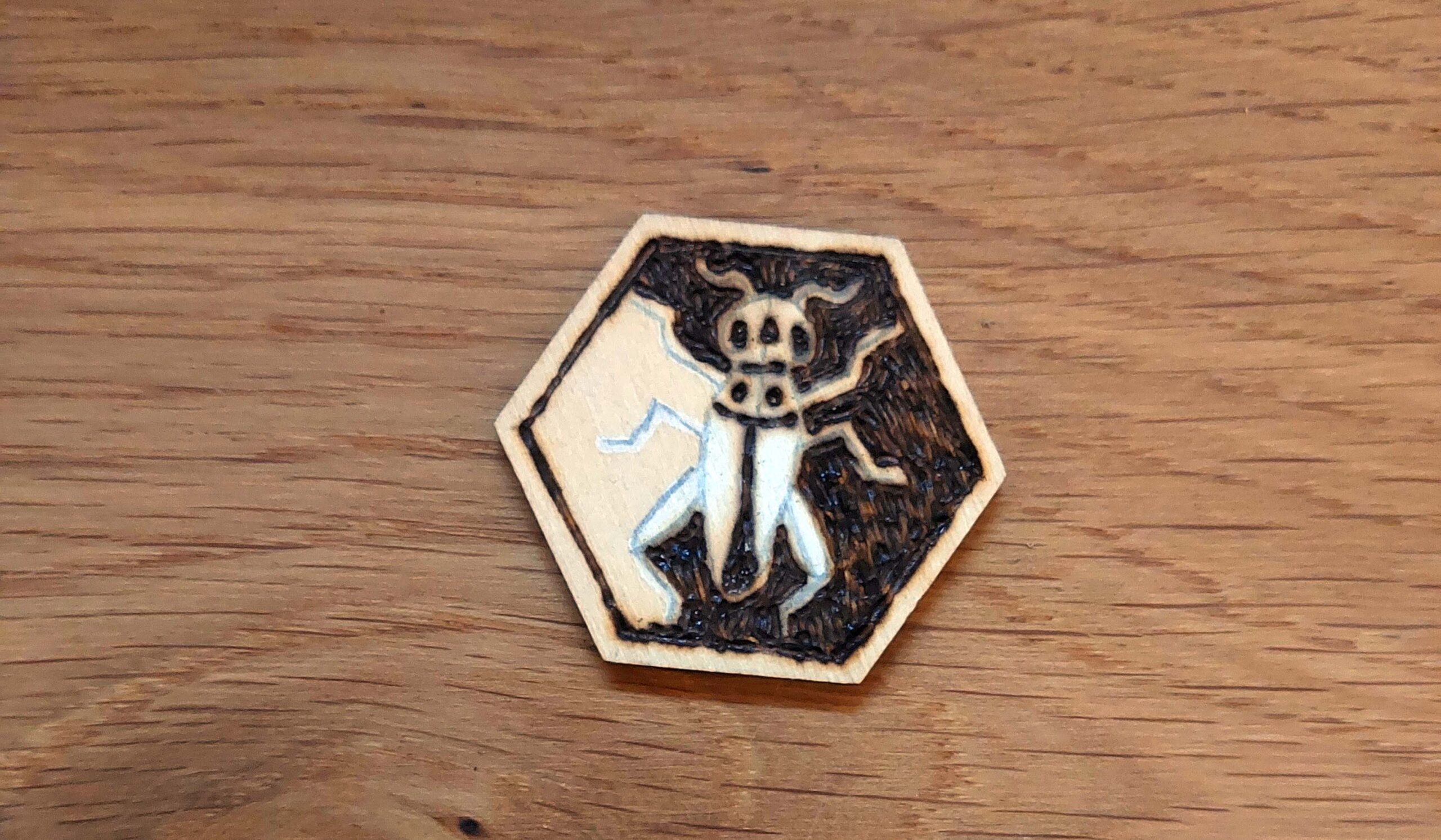 I realised I could make it with a pyrography pen, hexagon wood tiles, paint and some varnish. You could do the same without the pyrography pen, and just using paint instead.