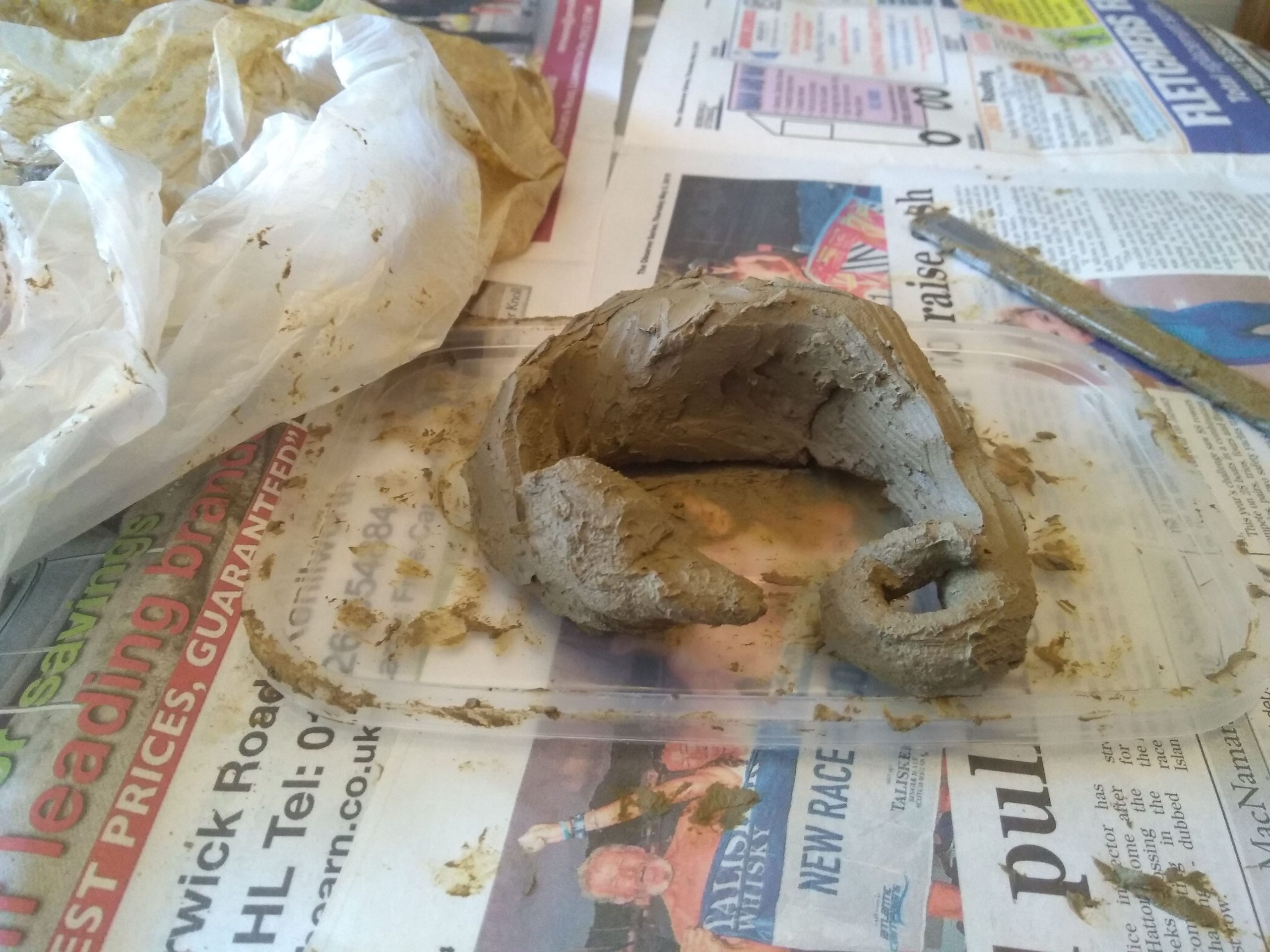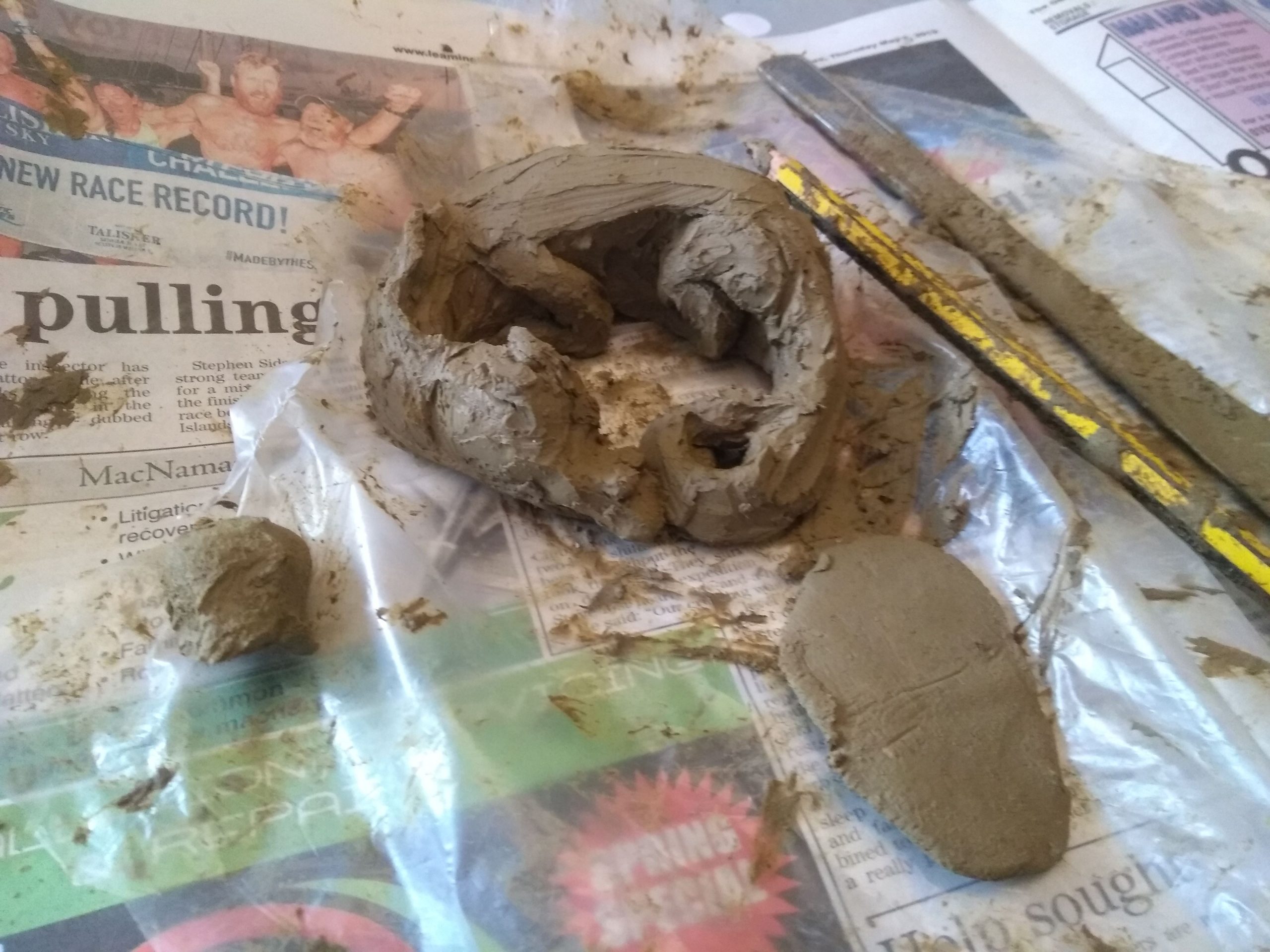 More recently I visited family in Hampshire and was asked to dig a hole for a new fence post. As you have probably guessed, I went pretty deep and struck clay. Instead of making clay balls and lobbing them around I decided to take up clay modelling, so this post details my foray into clay modelling using garden variety clay – or ‘earthen clay’ to use the pottery lingo.