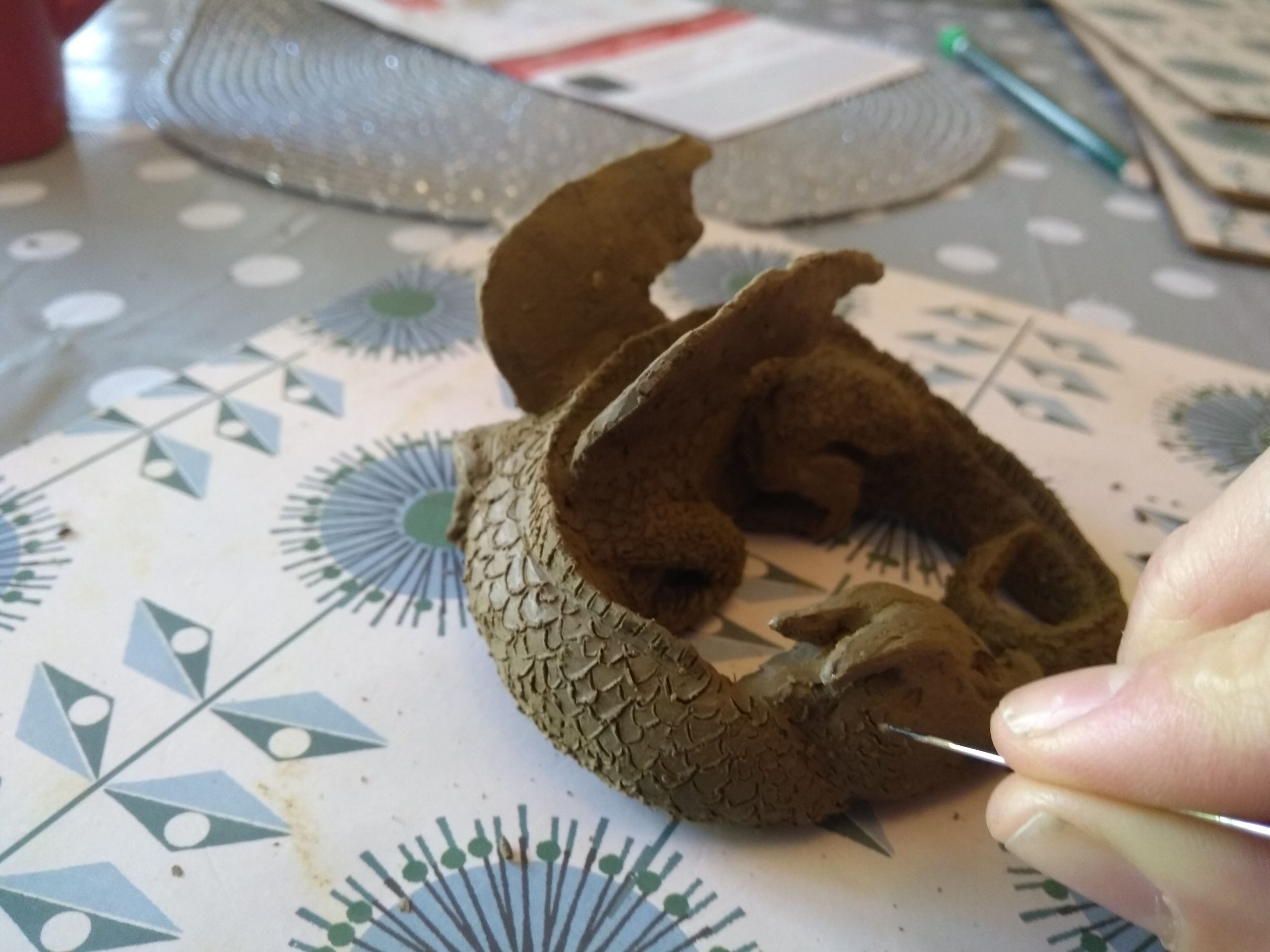 The dragon took hours and hours to get it how I wanted. I think it was roughly 6 hours of reshaping and practising until I was happy with it. I’ve found out it’s easier to remove excess clay than it is to add more on. So after trying to model everything separately in my first few attempts, I then started with the rough outline and gradually removed clay to reveal the shape.