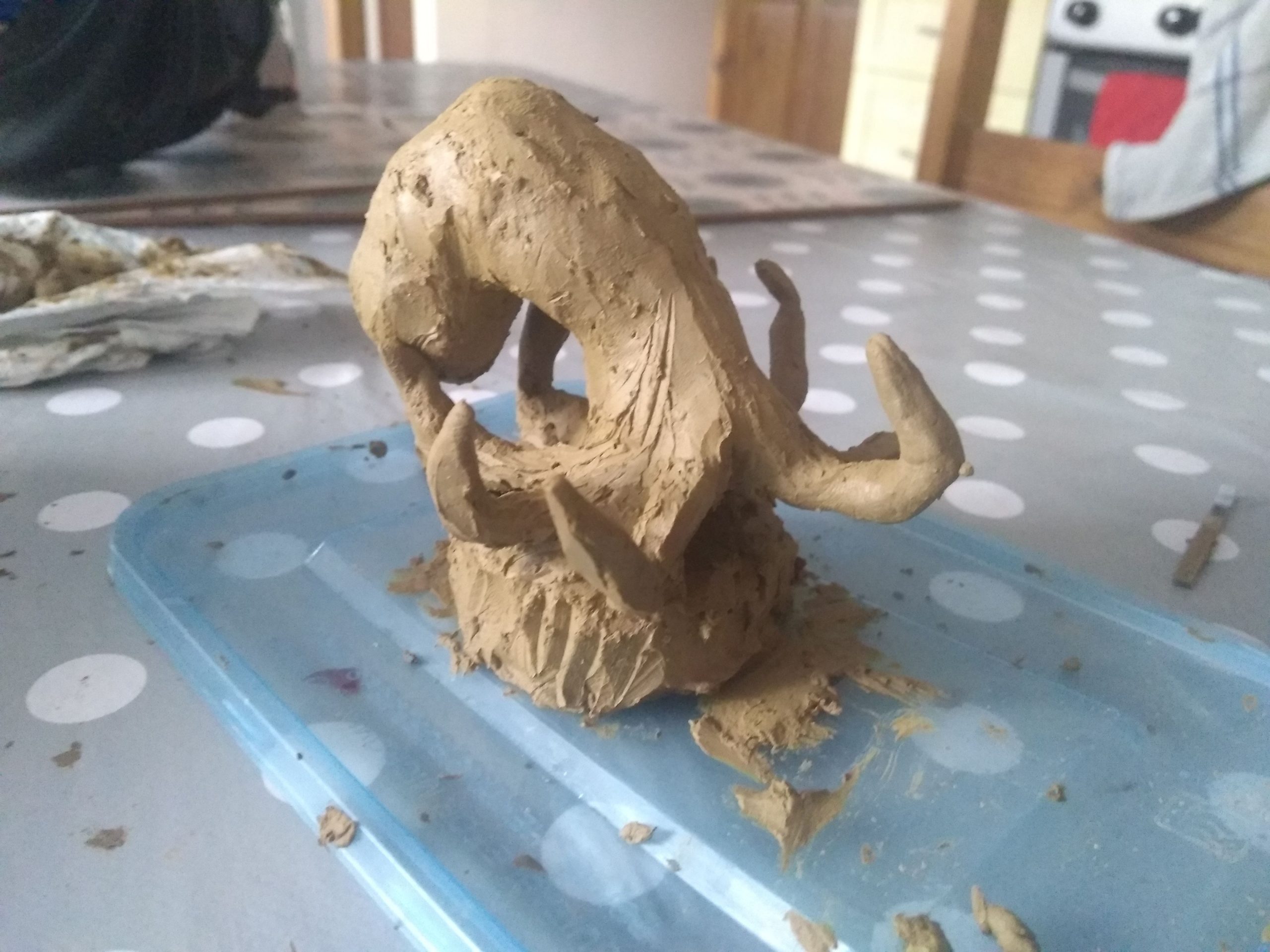 My final creation with this batch of clay was an Octopus. I designed it on a lump of rock to keep it upright, with the tentacles rearing up around it.