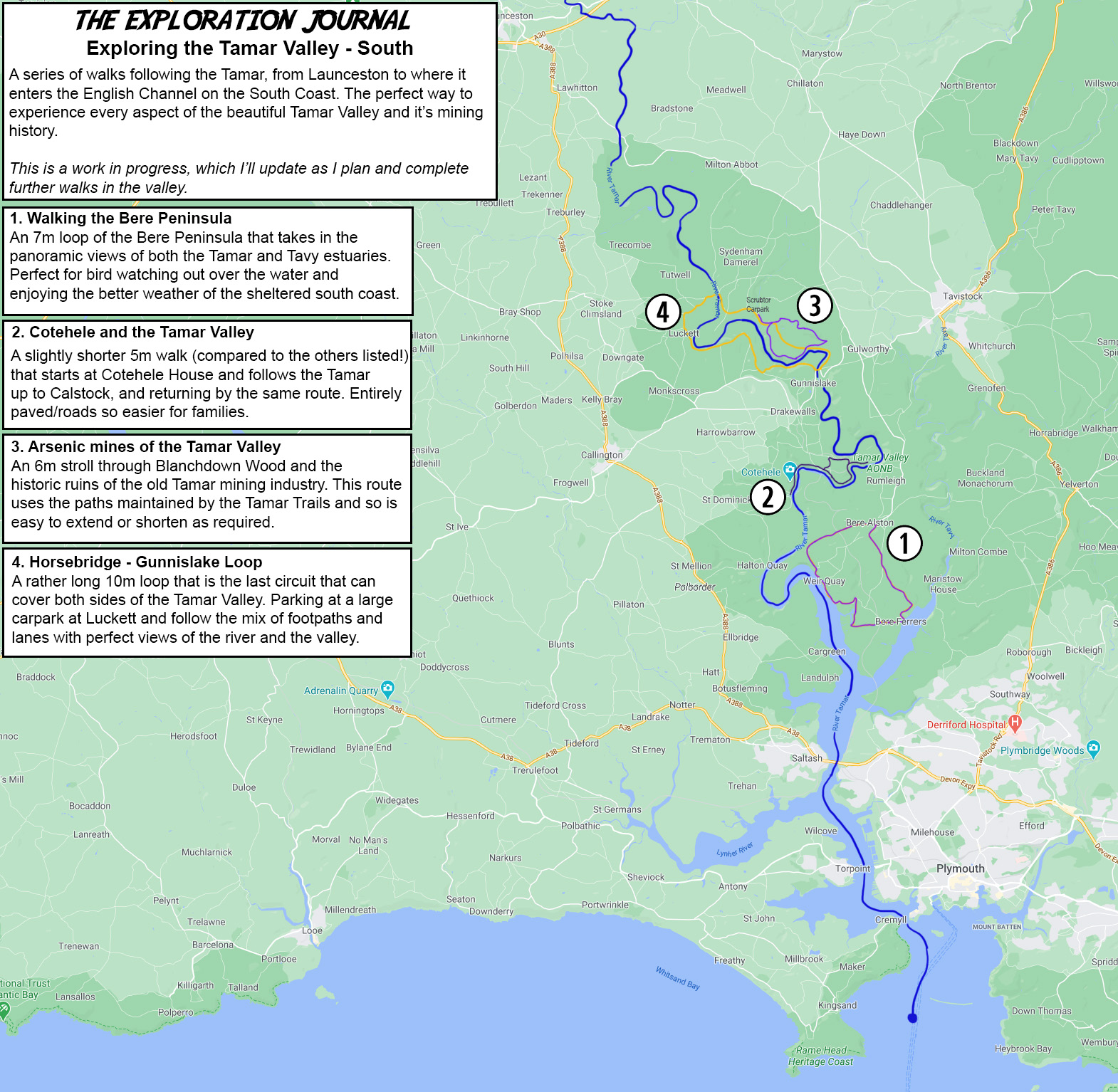 When someone happens across an arsenic mine on their land they probably don’t react with “oh that sounds like a great place to visit! Lets build a series of public walking and trails through it!”. Nevertheless, that is what Tamar Trails have done, turning the once poisonous arsenic mines of the Tamar Valley into a walking, mountain biking and general tourist destination. The Tamar River forms much of the border between Devon and Cornwall and as these trails are on the East side of the river, they are in Devon.