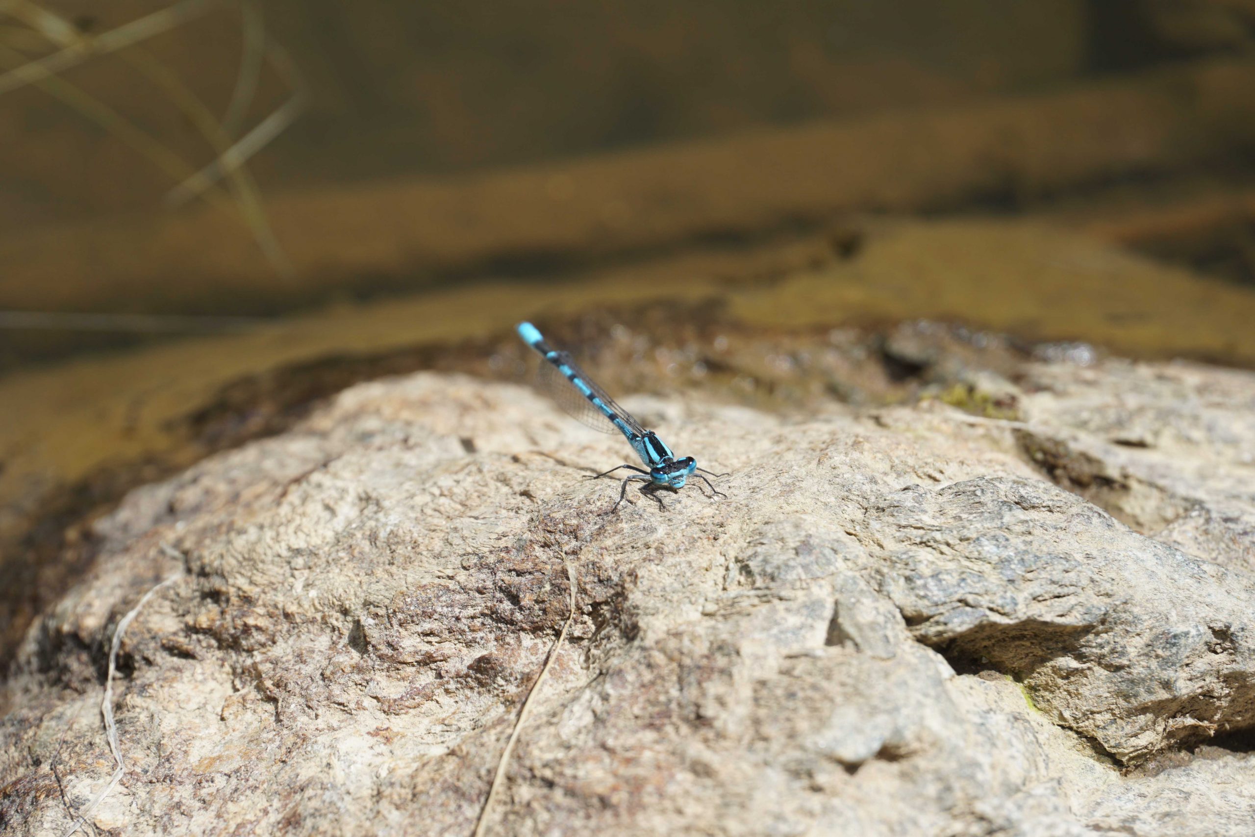 There are also warning signs near the water sources that warn against drinking and playing in the water. Though if the water does contain arsenic it doesn’t appear to affect the local wildlife. I spotted Common Blue Damselflies flitting over the water and a deer amongst the trees.