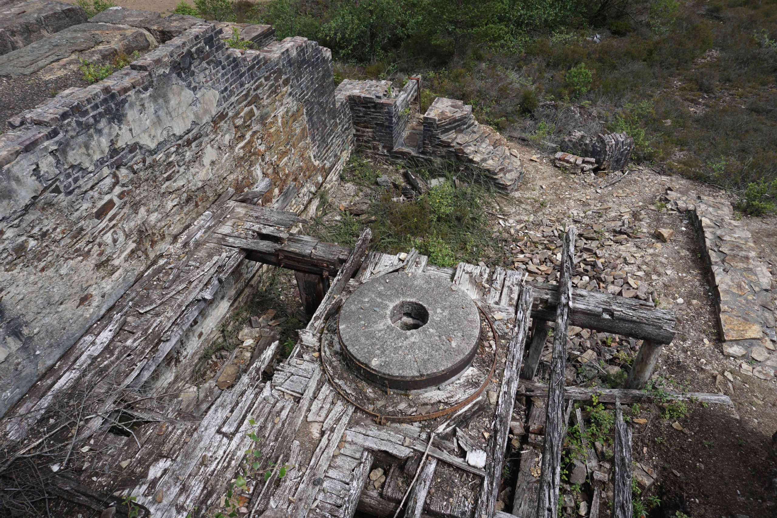 I rounded a corner at the top of the hill and found the old mining works, neatly fenced off with a path meandering between the ruined buildings.