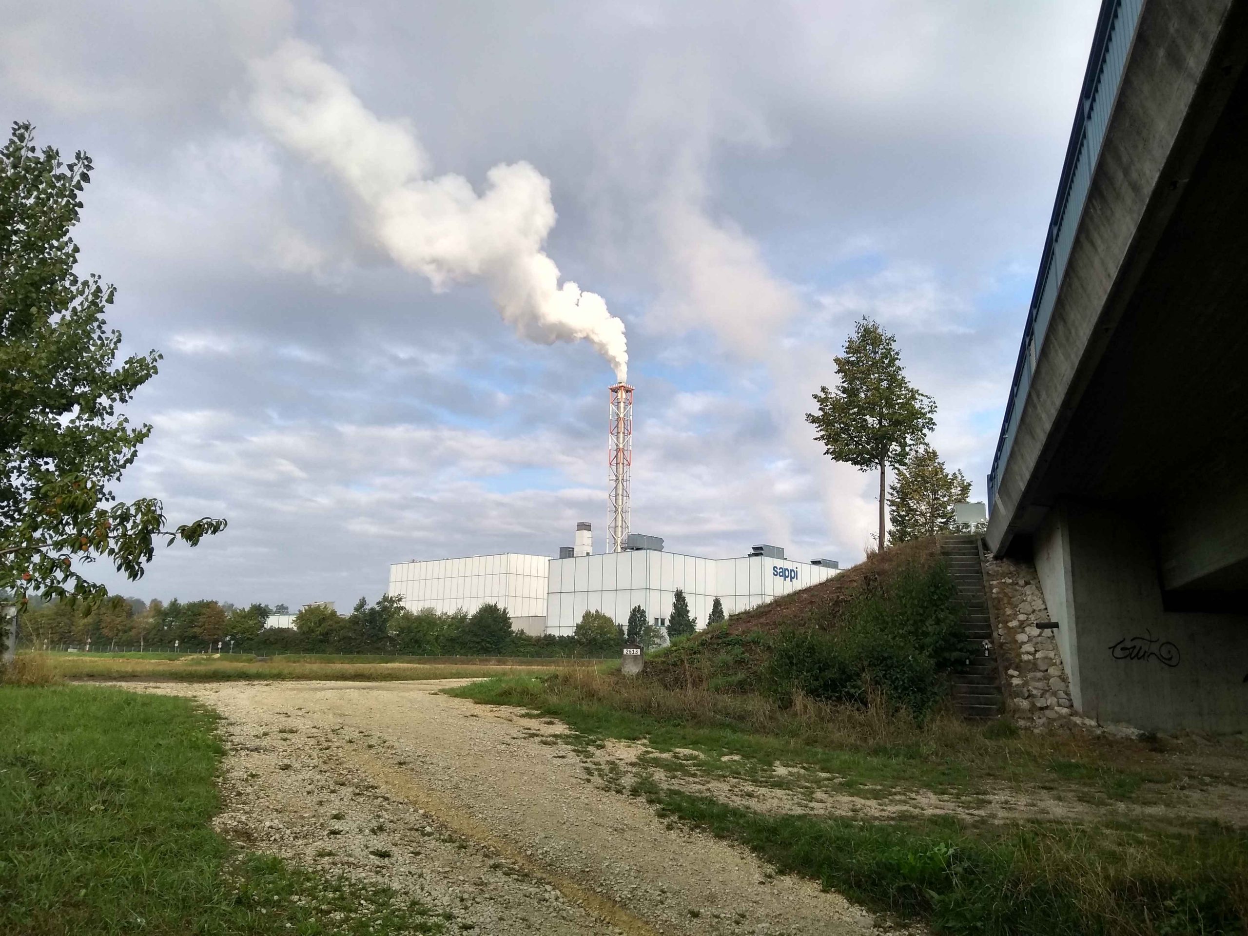 It was another of those rainy days where we were both drenched and just wanted somewhere dry to camp (that didn’t cost money of course!). We were still cycling at 7pm when we found this bridge so we camped under it. In the morning there was a horrendous smell in the air and the only culprit was this place… ‘Sappi’. Just looked them up and they manufacture woodfibre. Not sure why it stank but it did.