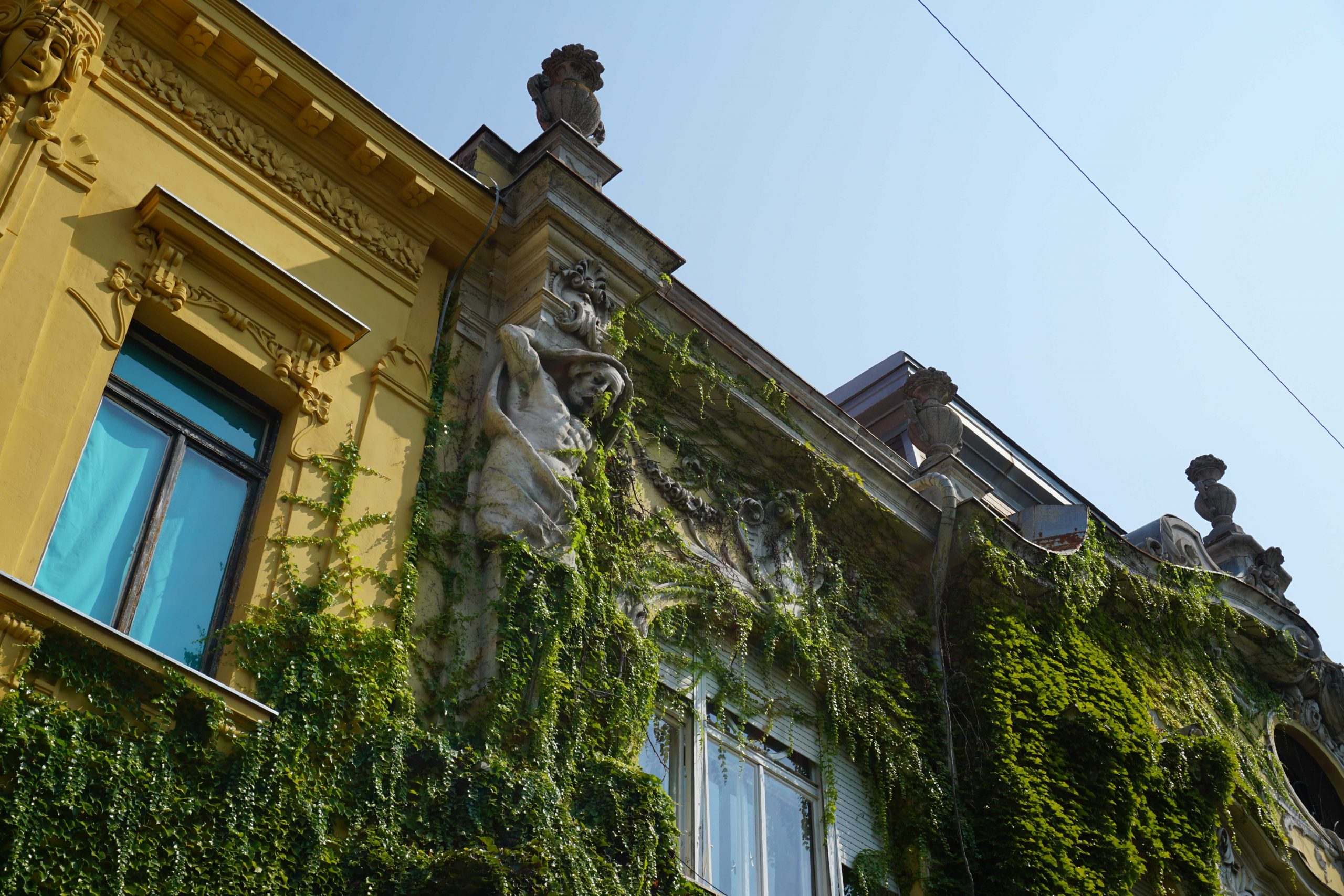 One of the buildings was decorated with statues and carved faces, covered in ivy. It was near here that we met Len Collingwood, a Scottish man cycling from Edinburgh to Instanbul on a rickshaw!