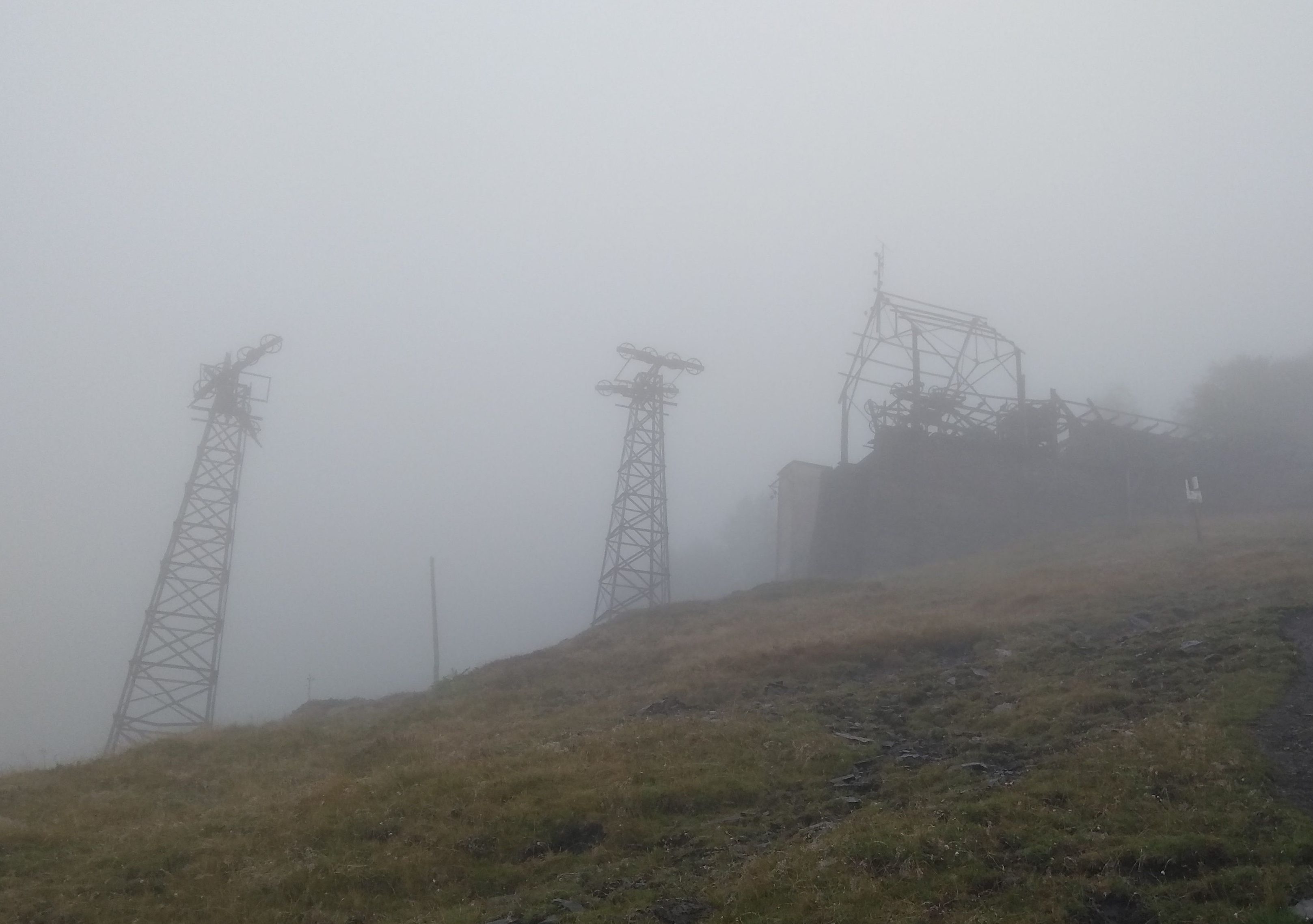 Due to the continuous presence of enveloping cloud, most of the mine workings were hidden from view and the desolate buildings and towers I could see appeared out of the mist, forgotten and abandoned. My camera was buried somewhere deep in my rucksack on the way up so I only took quick photos on my phone.